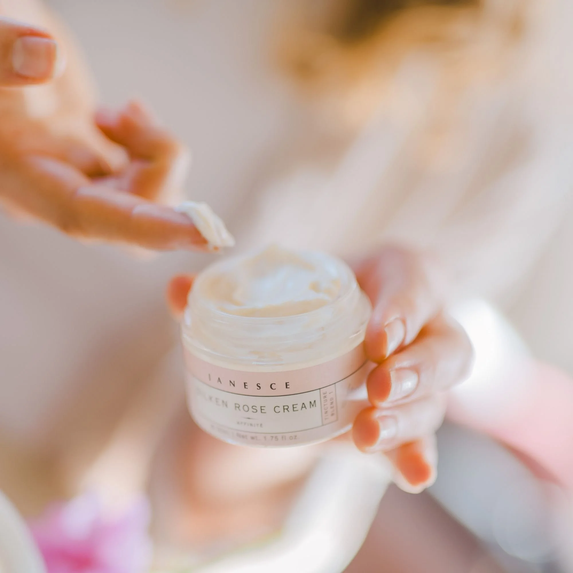 In the morning, simply wipe the skin with a damp cloth and move onto The Janesce Skin Soaking Routine. This will remove any excess oil or perspiration without compromising the skin barrier.