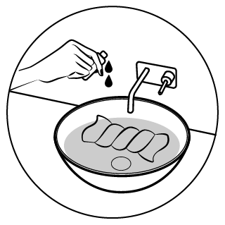 Partially fill your hand basin with warm water. Add 2-3 Janesce Soaking Drops to the water.